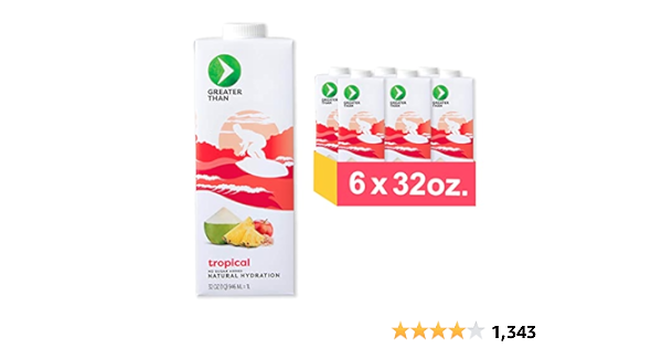 Amazon Com Greater Than Electrolyte Packed Fruit Infused Coconut Water All Natural No Added Sugar Ditch The Powders Packets Artifical Colors Flavors Tropical 32oz Pack Of 6 Grocery Gourmet Food